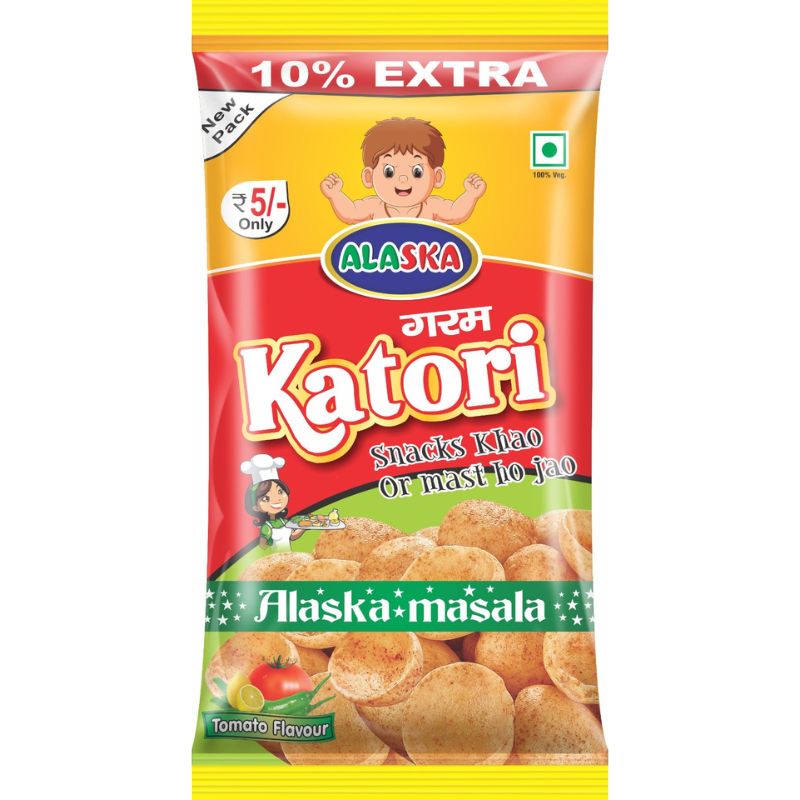 Alaska Garam Katori ek ultra-crunchy, tomato-flavoured snack hai jo har bite me deta hai chatpata Alaska Masala ka maza. Light, crispy aur super tasty — perfect ₹5 snack for school, travel, tea-time aur anytime munching!